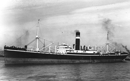 SS Makaland, built at Lithgow's Ltd, Port Glasgow in 1918, which was destroyed at Liverpool in 1941. |